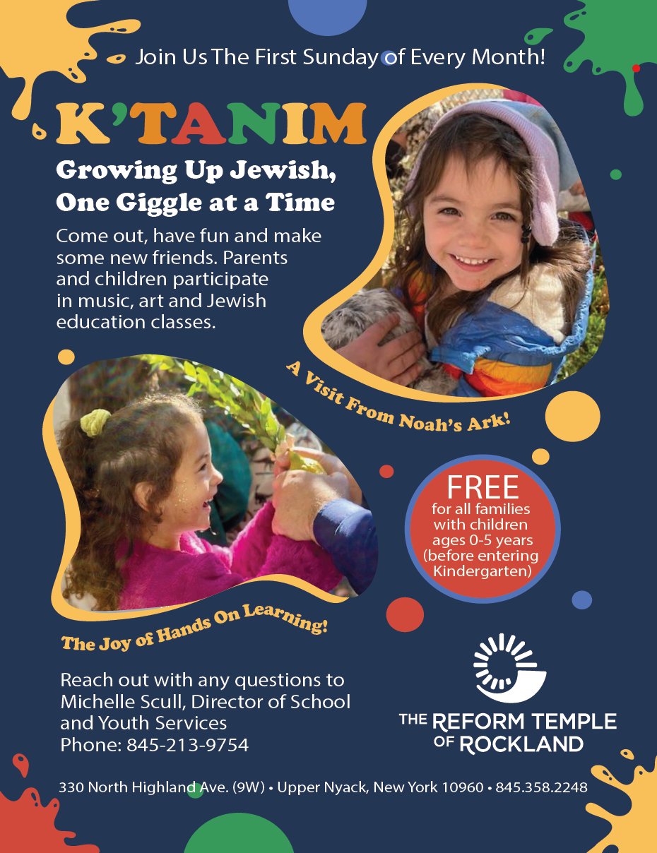 Join our FREE monthly Preschool Program full of wonderful interactive learning experiences: music, crafts and Judaism. Designed for ages 18 months to 4 years. This program takes place once a month on Sunday mornings at 9:30 AM. Adult participation is required. This is not a drop off program.